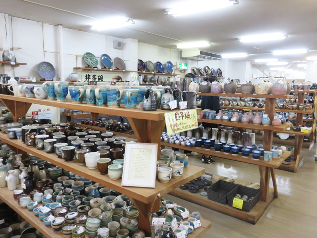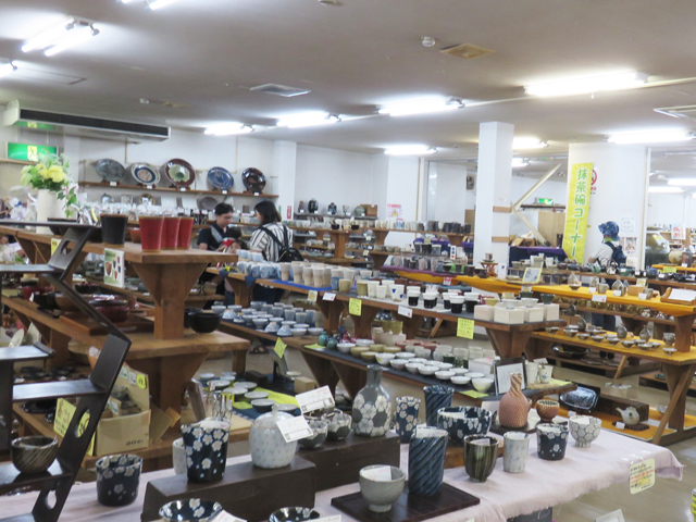 The center of Mashiko town has rows of stores and potters’ galleries selling Mashiko-Yaki pottery along the ‘Jonai-zaka’ street. The major shop might be Kamamoto’s Kyohan center selling many potters’ works where the huge raccoon dog welcome tourist.